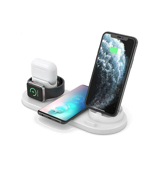 Tekniske data: – Perfekt til at få samlet alle dine enheder – Beskyttet mod overophedning og overspænding – Understøtter opladning af 4 enheder samtidig – Ekstra USB-A udgang i enheden – Udgang: 2x Lightning, USB-C og Micro-USB stik.