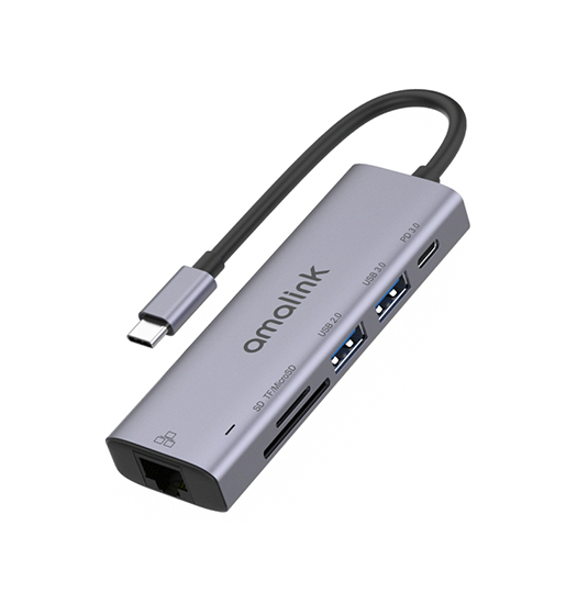 AMALINK™ | Multihub USB-C til 2xUSB-A / 1xUSB-C / SD/TF / Ethernet – Grå – AMALINK