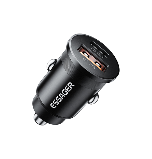Tekniske data: – Udgang: 1x USB-A 3.0 (18W), 1x USB-C (PD 45W). – Material: Aluminium Alloy+PC. – Opladning 45 Watt! – Certificeringer: CE, RoHS.