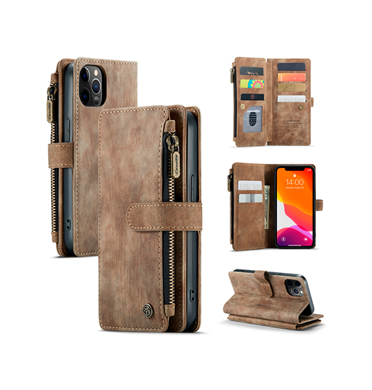 iPhone 11 Pro Max – CaseMe™ Multifunktionel Læder Etui / Pung – Brun – CaseMe