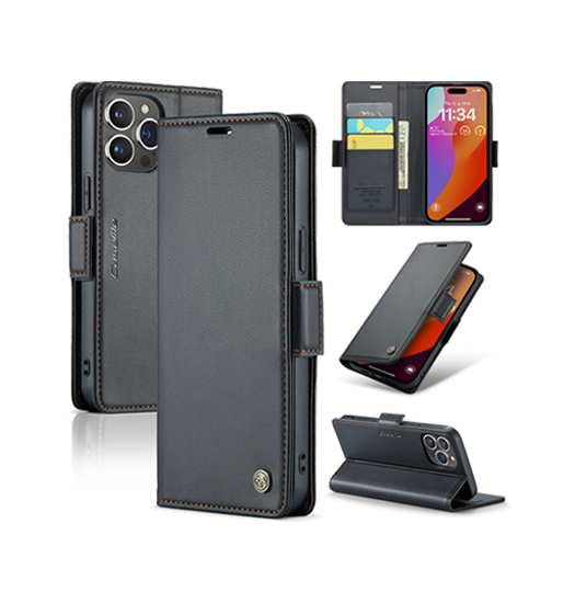 iPhone 15 Pro – CaseMe™ Neo Læder Cover / Pung – Sort – CaseMe