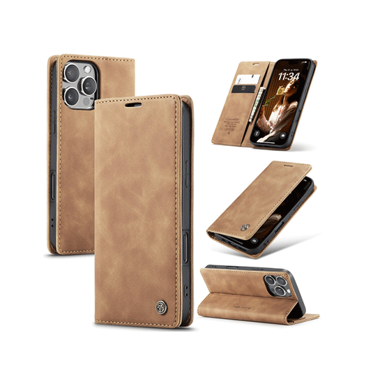 iPhone 16 Pro – CaseMe™ Noble Læder Etui / Pung – Brun – CaseMe