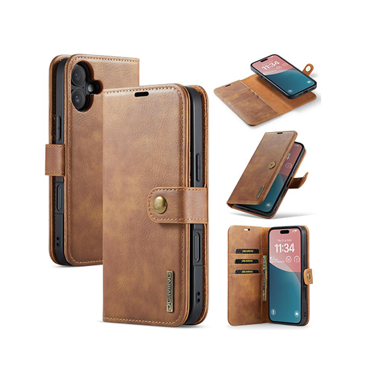 iPhone 17 – DG.MING™ Vintage 2-i-1 Læder Etui M. Cover – Brun – DG.MING™