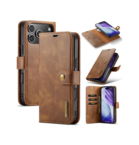iPhone 17 Pro Max – DG.MING™ Vintage 2-i-1 Læder Etui M. Cover – Brun – DG.MING™