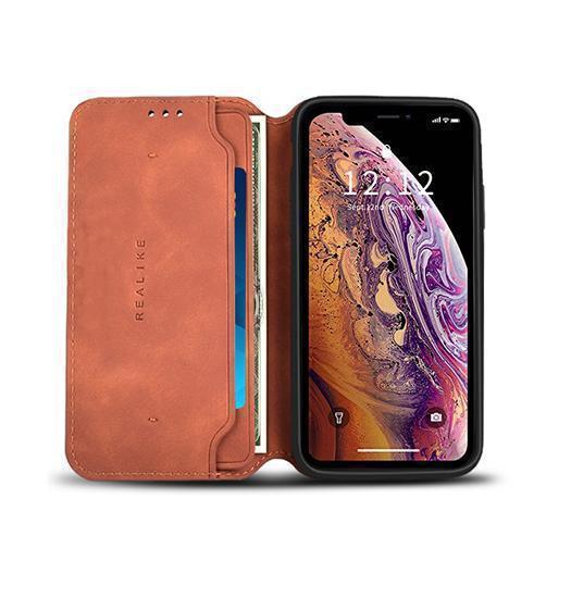 iPhone XS Max – Realike™ Folio Læder Cover M. Kortholder – Brun – Realike