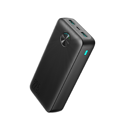 Tekniske data: – Porte: 2x USB-A – 1x USB-C. – Batteri: 20.000 mAh. – USB-A Output: 22.5W. – USB-C Output: 18W. – 3 gange hurtigere opladning! – Oplad op til 3 enheder samtidigt. – Beskyttet mod overopladning, kortslutning m.m.